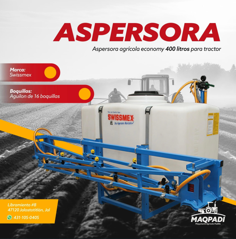 Aspersora 400 litros Aguilon liguero de 16 boquillas, tanque rectangular y bomba kappa 43