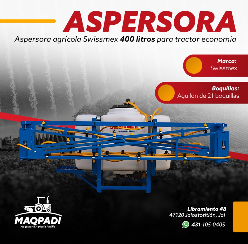 Aspersora de 400 litros con Aguilon de 21 boquillas reforzado, bomba kappa 43.